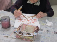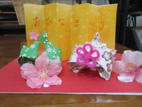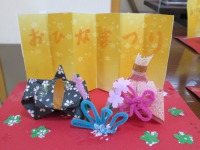 デイサービスでは折り紙を使って手作りのひな人形を作りました。