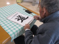 デイサービスの今月の書道教室は「希望の春」「道」「友情」などをお手本に、みなさん立派な【書】を完成させていました。