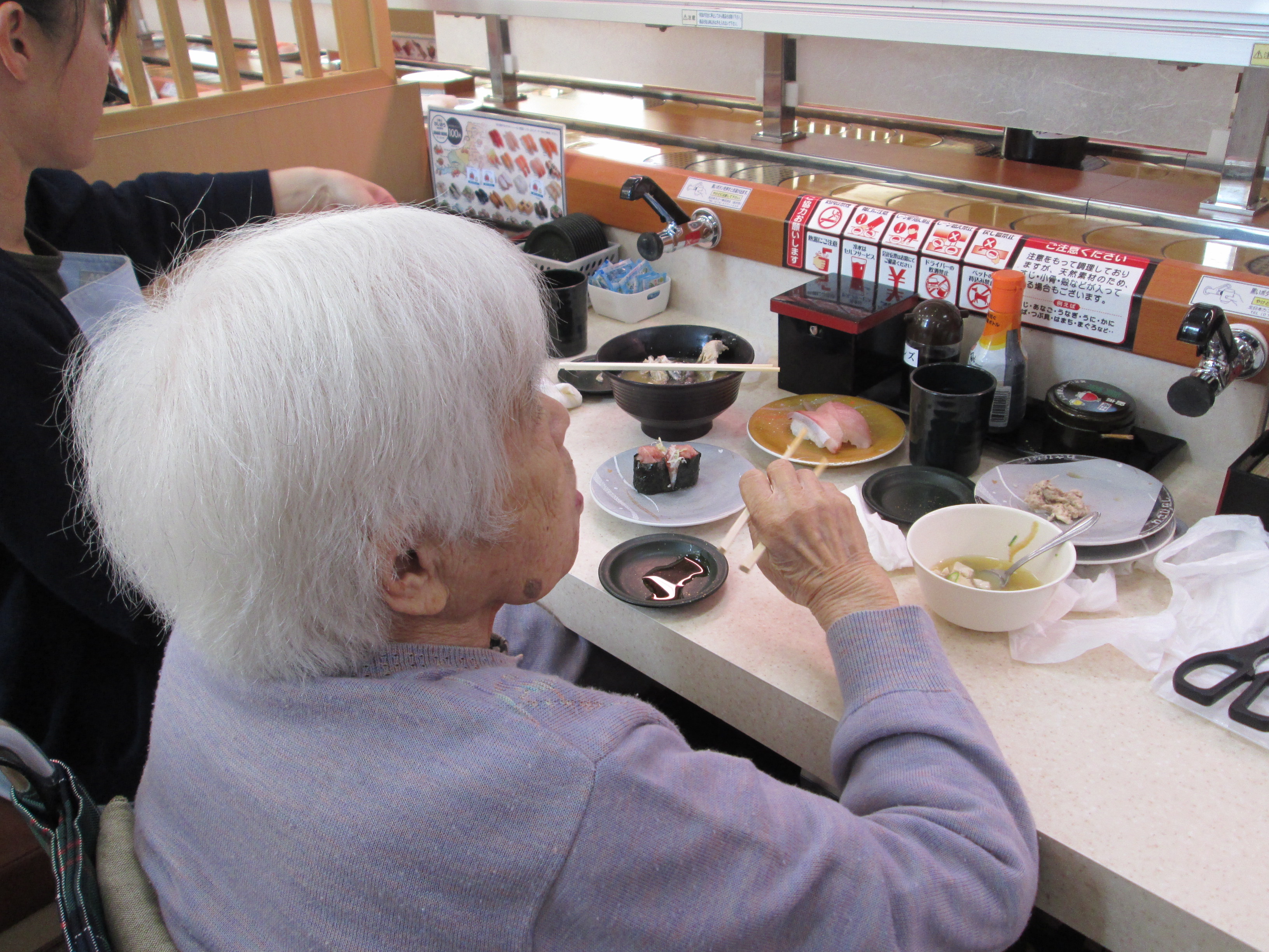 今週のデイサービスの昼食は、みなさんからのリクエストが多かった回転寿司です!!