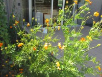 敷島ガーデンの黄色い花が台風の名残りの強風に揺らいでいます。