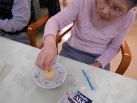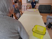 デイサービスでは、一風変わった玉入れで盛り上がりました。