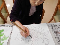 暖かな昼下がりに、デイサービスでは書道教室を開きました。