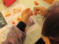 前橋敷島のデイサービスで、ちりめんを使ったウサギのストラップを作りました。