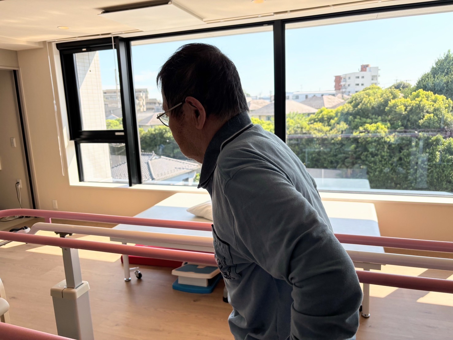男性と女性の入居者様とスタッフの3人で、散歩に出かけられました。