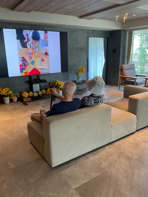 今日も暑かった💦ので短時間でお戻りになり、すぐエントランス前のソファーでクールダウン🍧…。