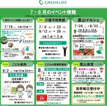 また、「イベントの グリーンライフ仲池上」ですので、7・8月開催予定の多彩なイベント情報も満載!!