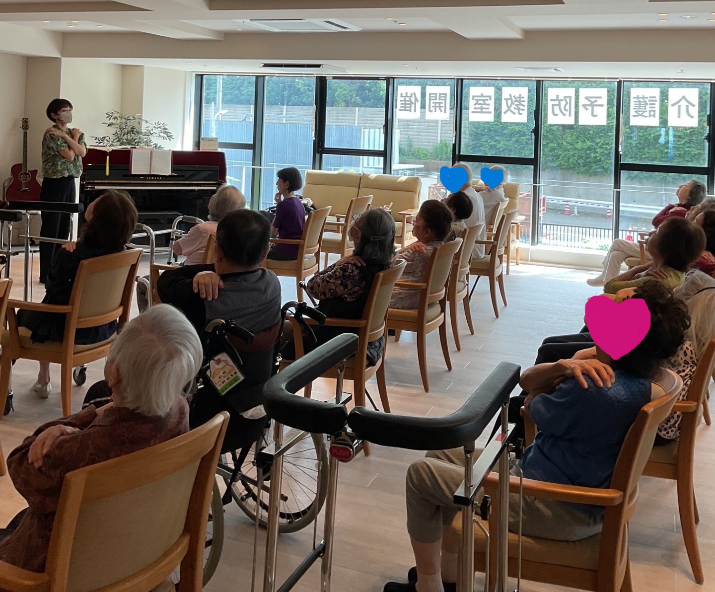 女性入居者様の中には音楽大学出身、また男性の中には地域カラオケ大会で常に上位入賞されていた方もいらっしゃり、その歌声に周りの参加者も刺激され、ついつい…(^.^)。