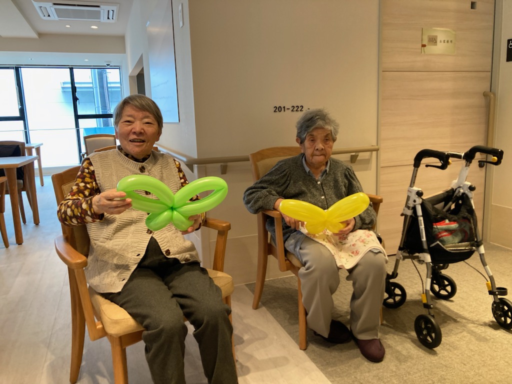 その後、入居者さんも交えて、大田区で人気のバルーンアート師の日直さんを