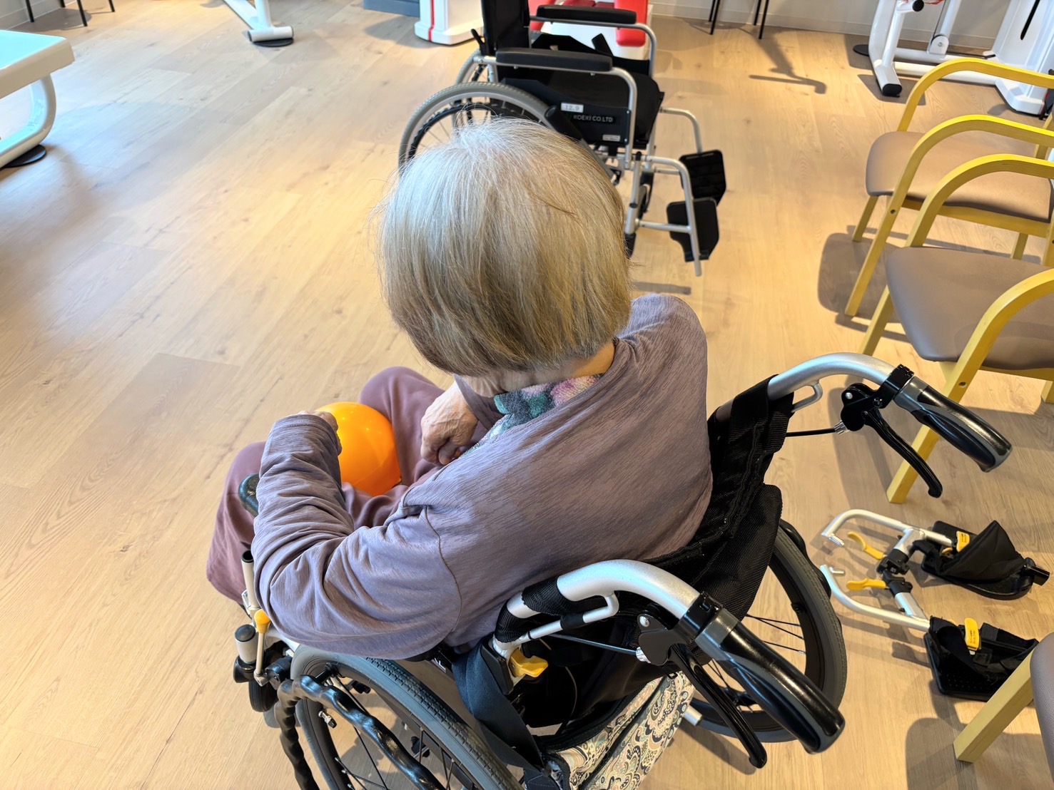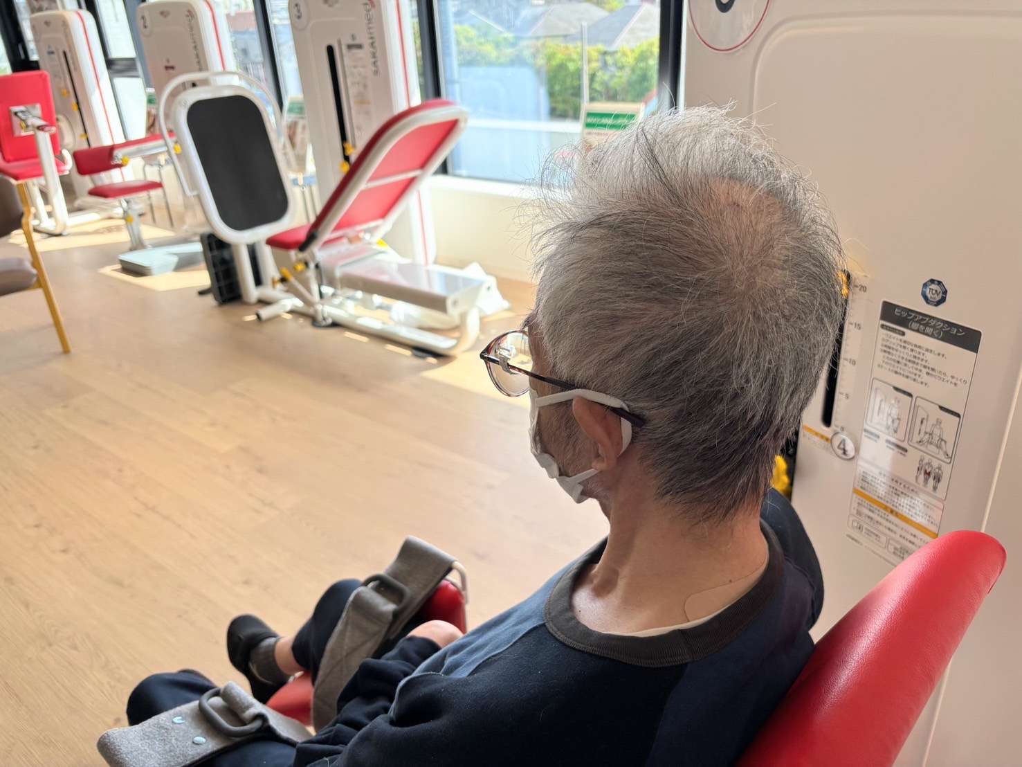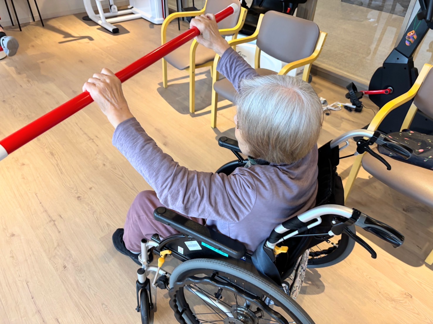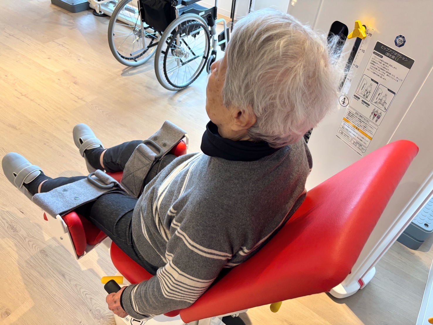 写真なので声は聞こえませんが、笑い声が絶えずのリハビリ風景です。