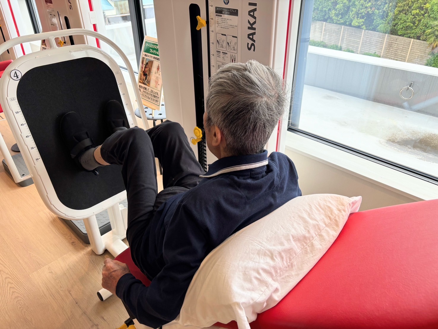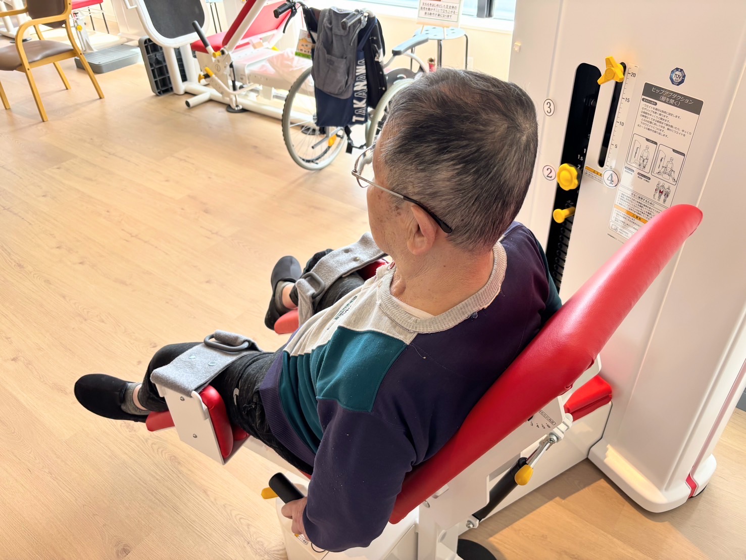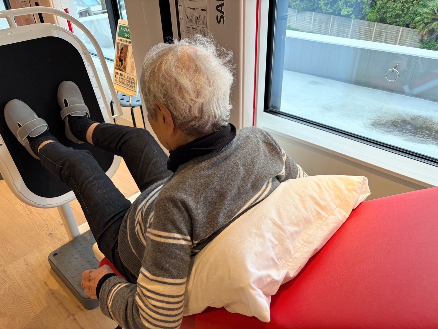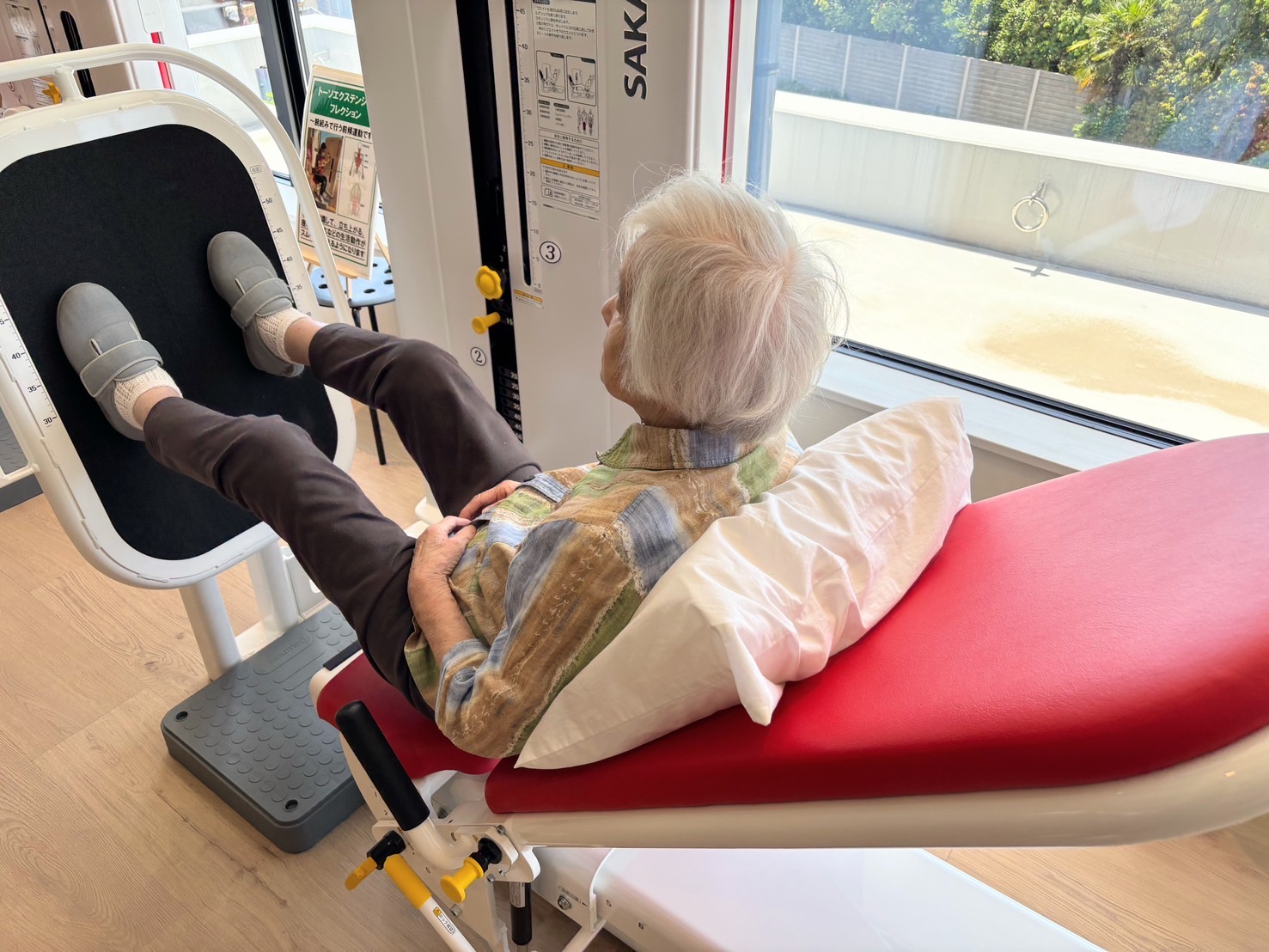 写真なので声は聞こえませんが、笑い声が絶えずのリハビリ風景です。
