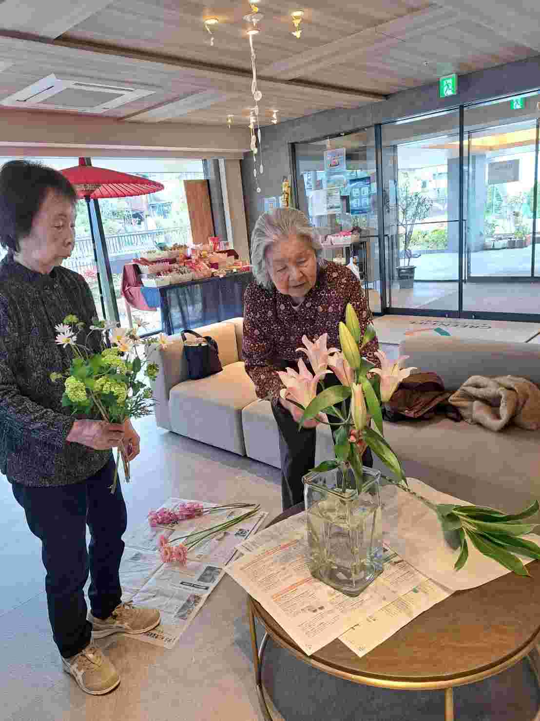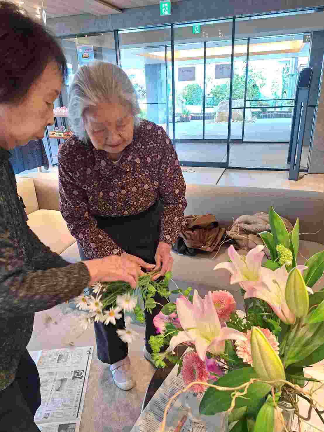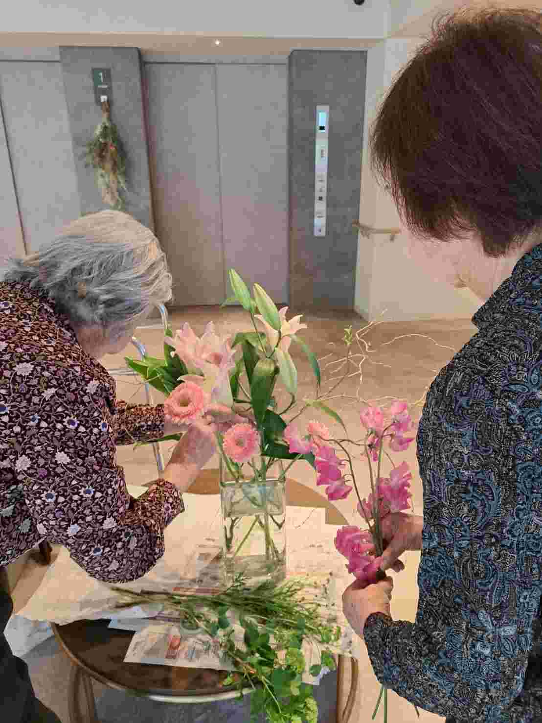ご入居者様に活けてもらいました。
