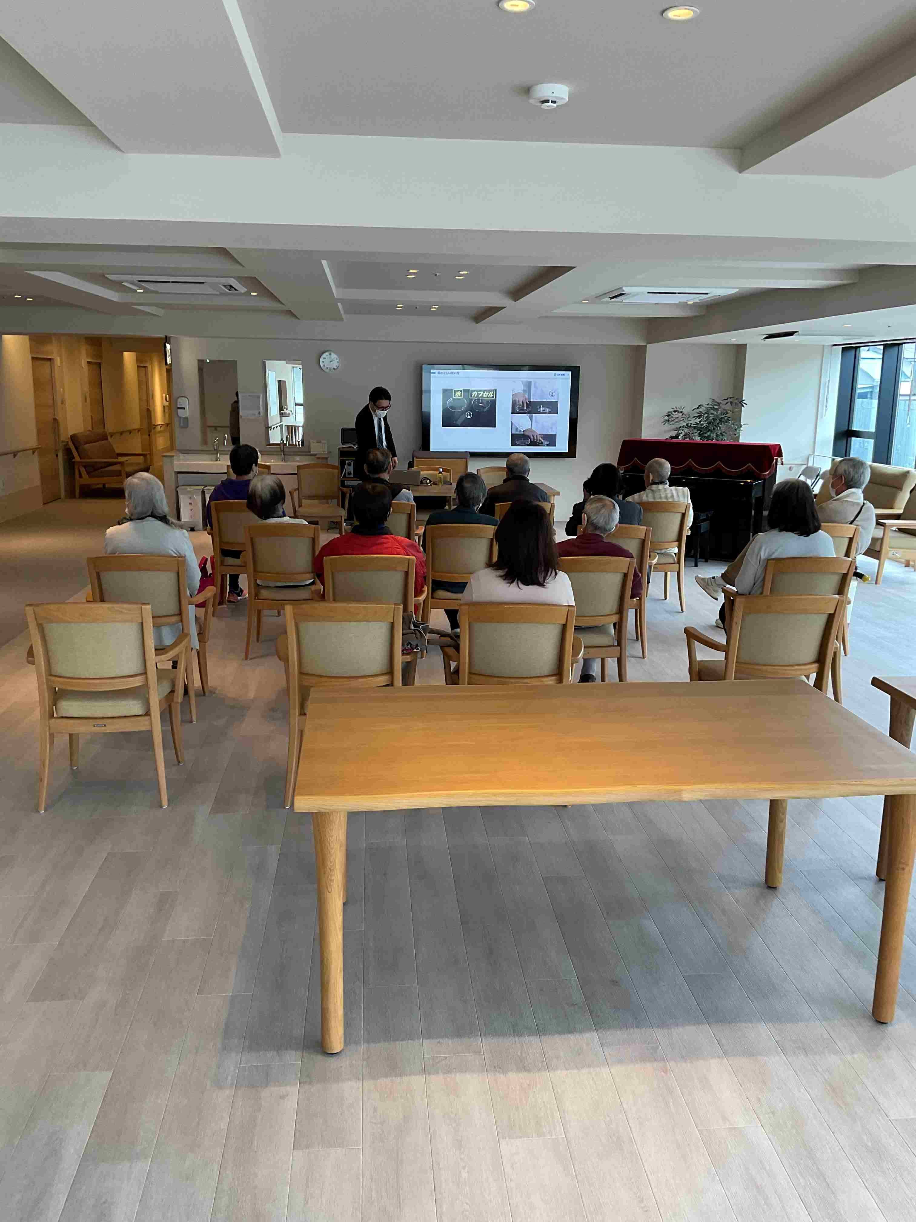 ご入居者様、ご家族様、地域の方が集まり、みんな一生懸命に薬について