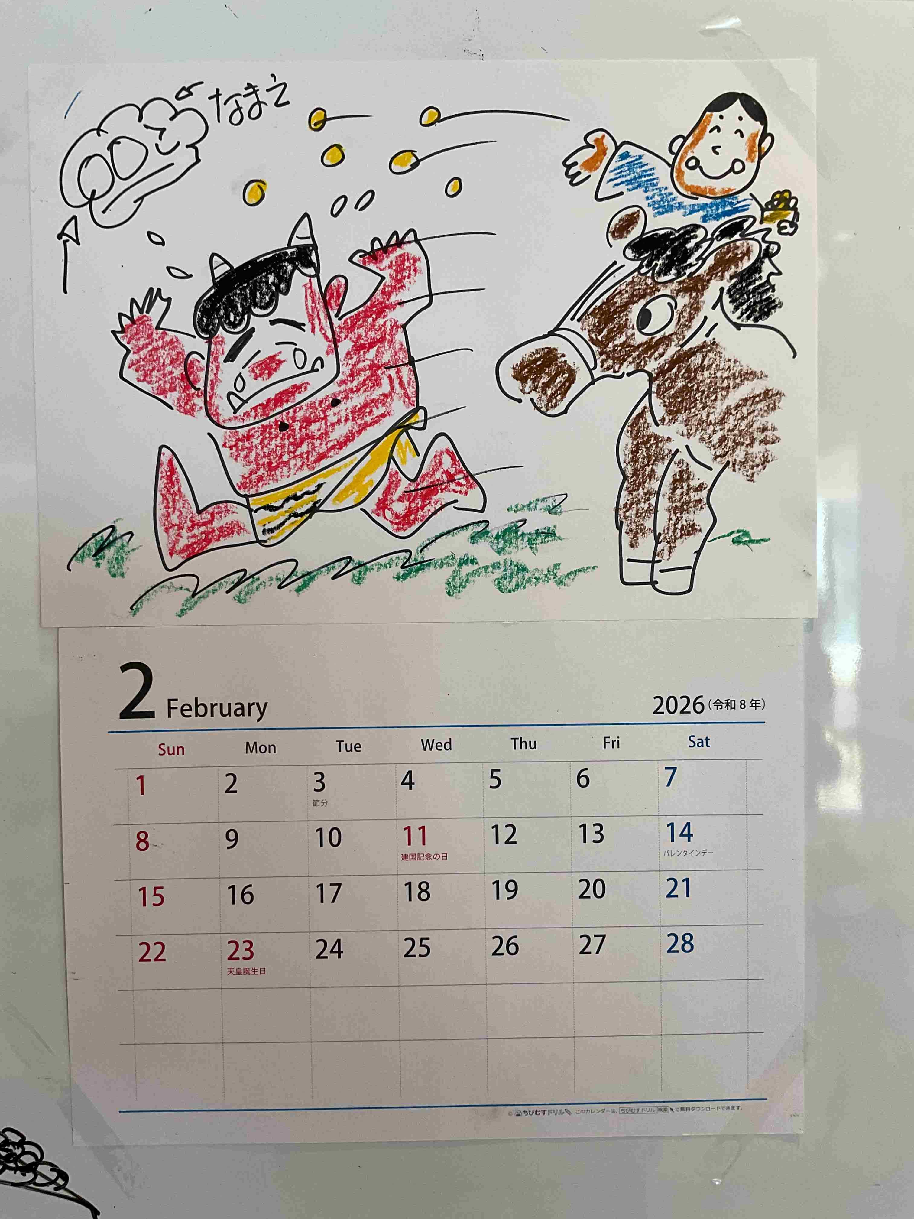 テーマは干支にちなんで「午」と2月のカレンダーづくりなので、「節分」