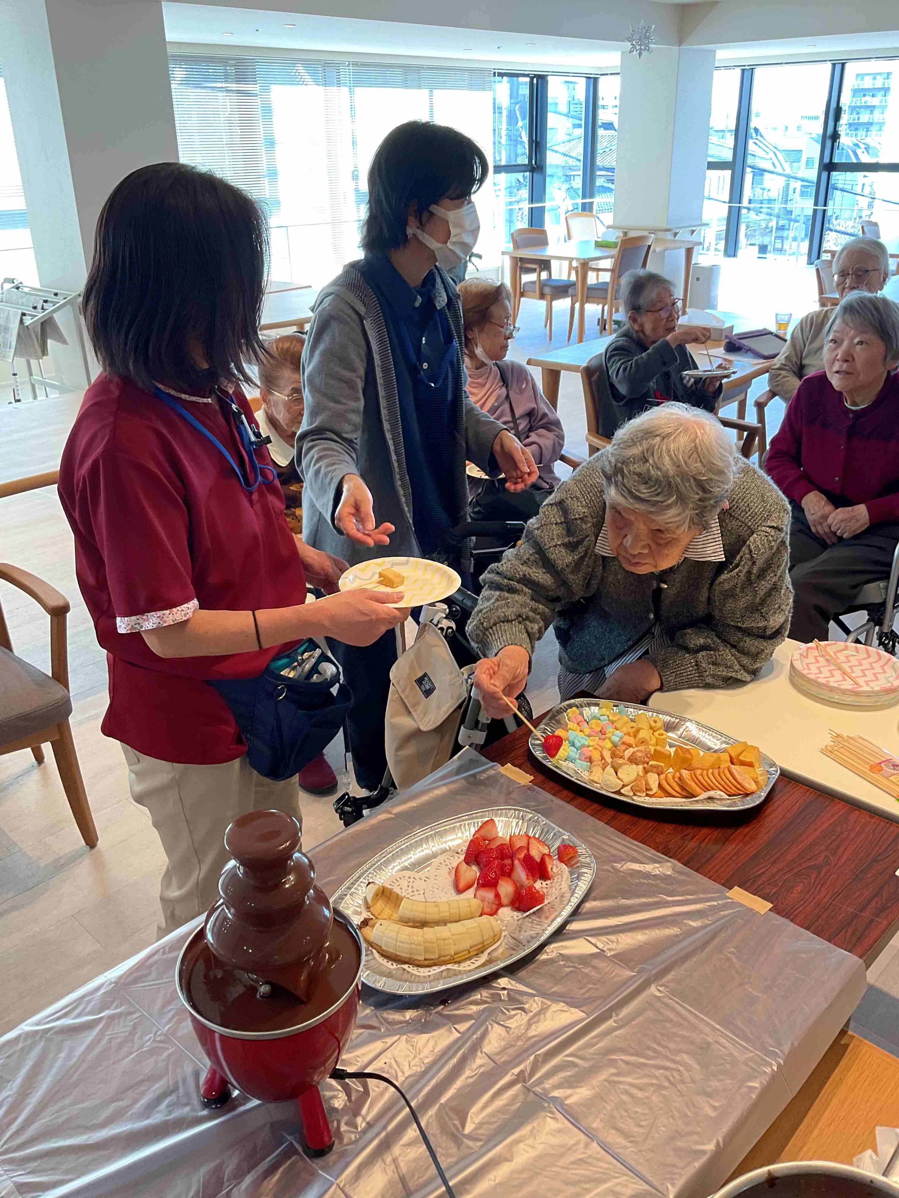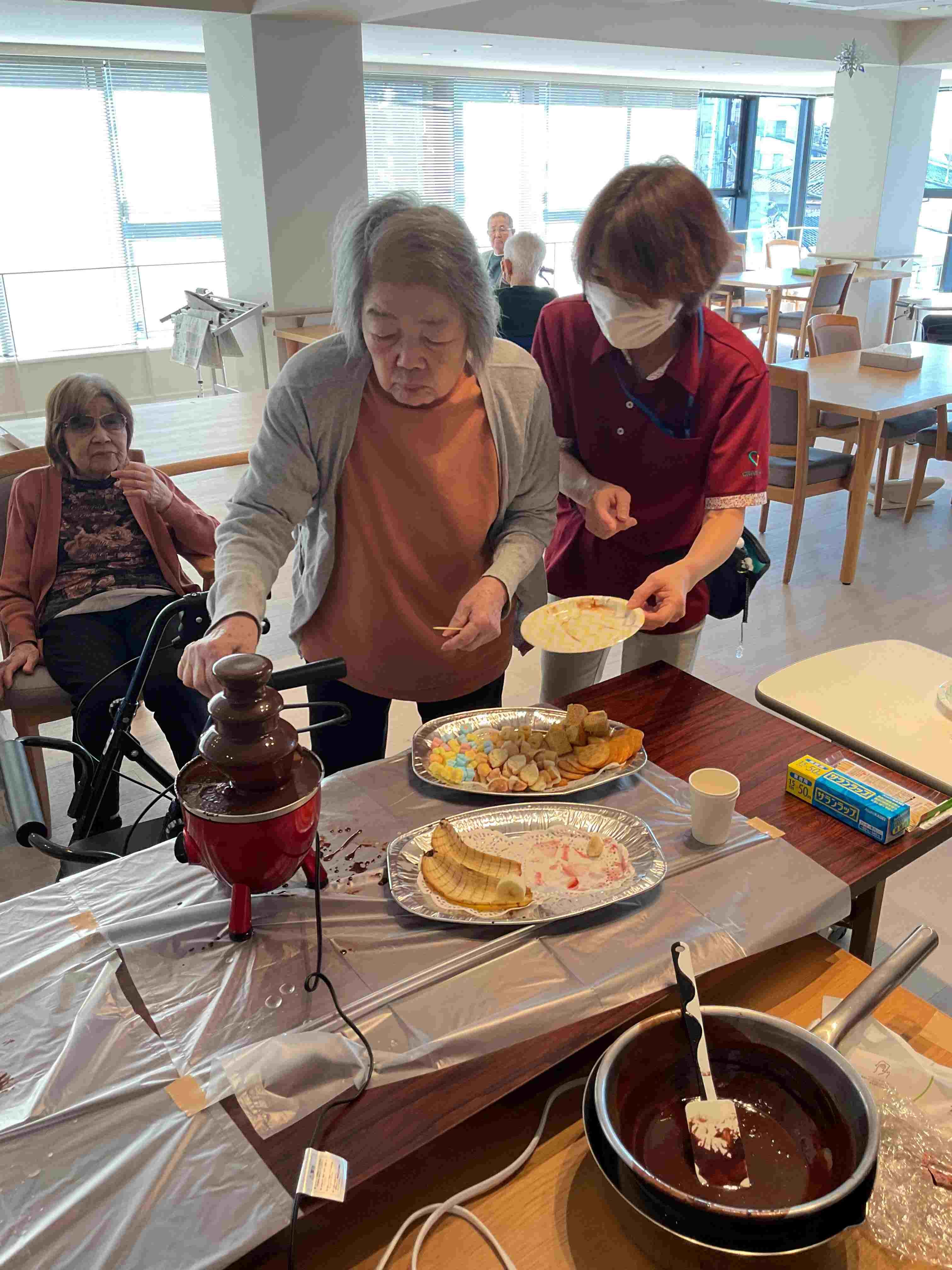バレンタインデーにみんなでチョコレートフォンデユを楽しみました。