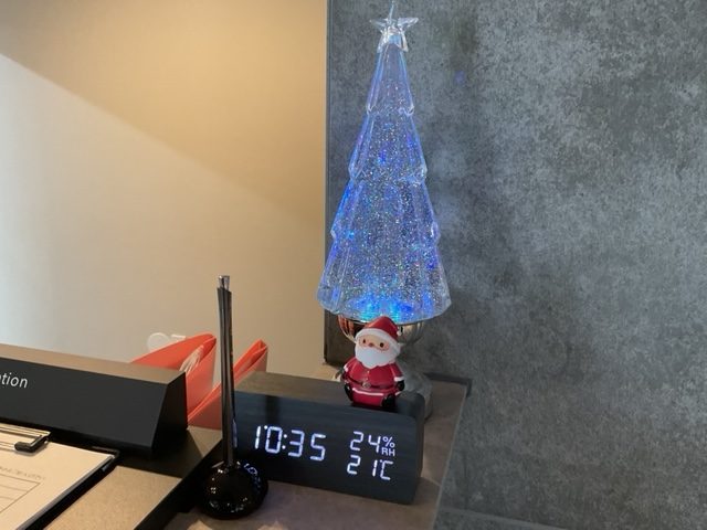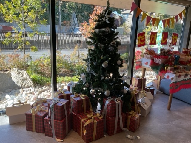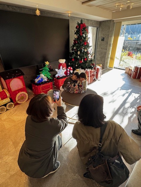 お帰りの際に、1階ロビー前の施設Xmasツリー前で記念撮影。
