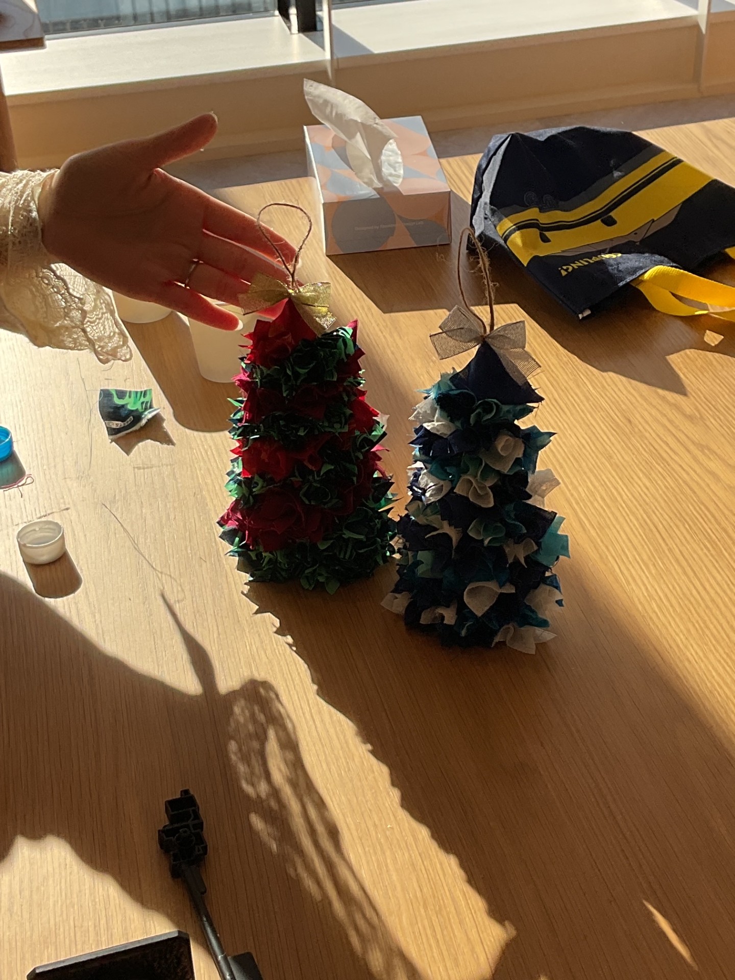 今回は、カラフルな様々な種類の布のハギレで「オリジナル クリスマス ツリー🎄」を作りました!!