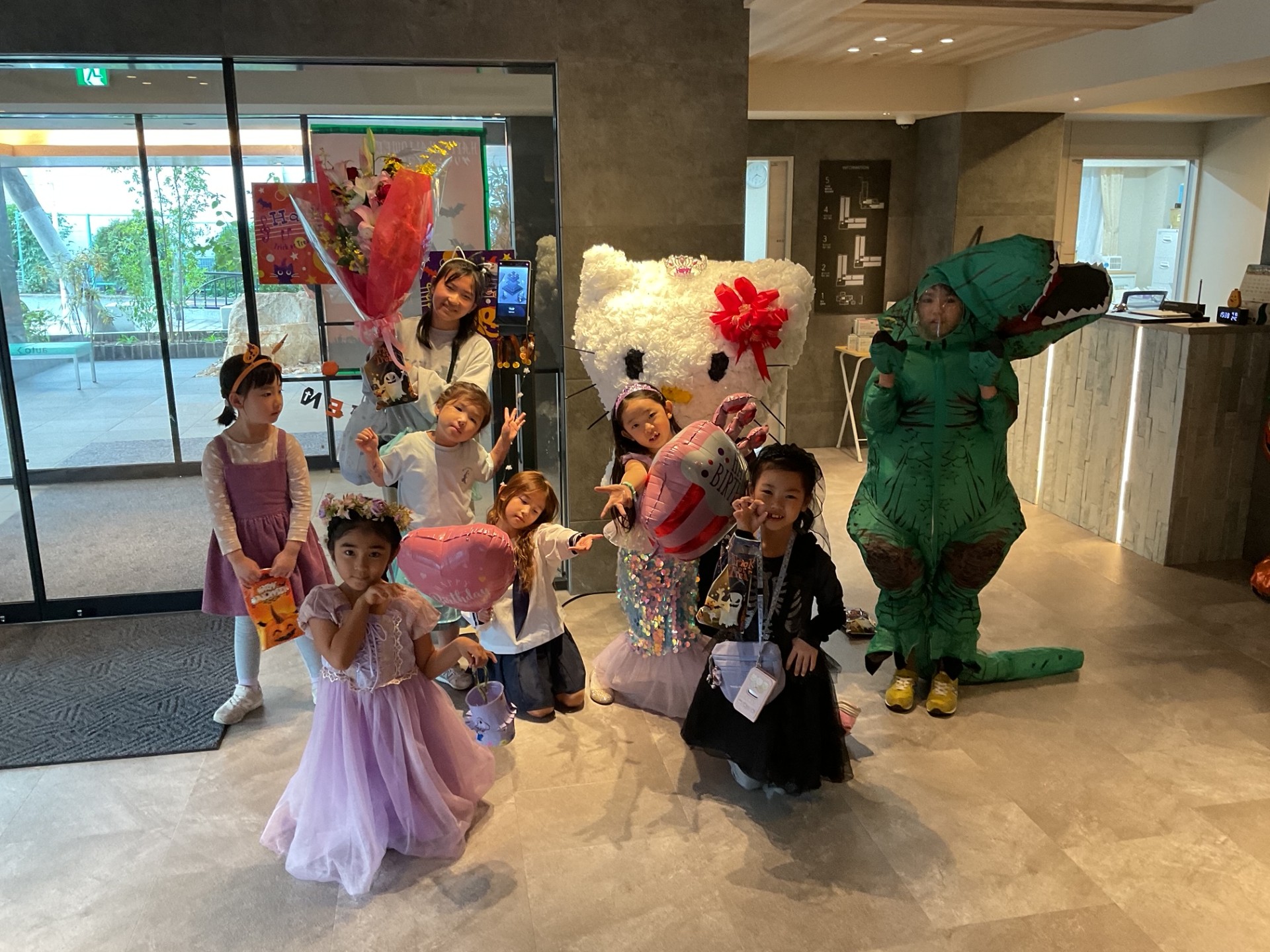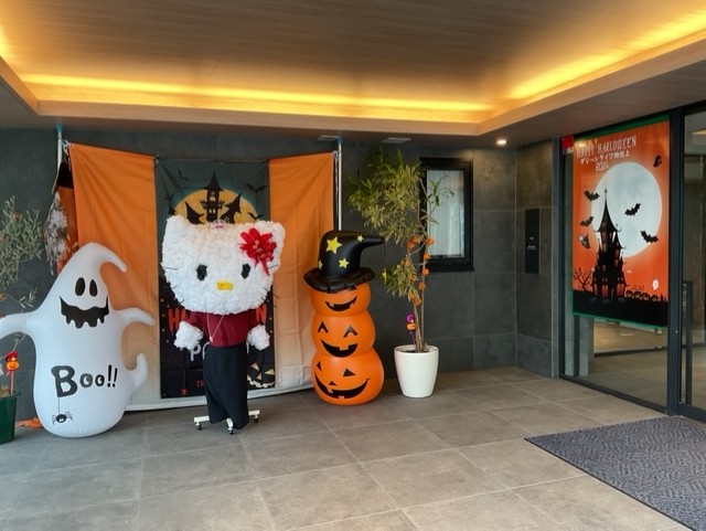 ハロウィン当日の今日、仮装をして施設に来てくれたちびっ子に駄菓子のプレゼントをするイベントを開催しました。