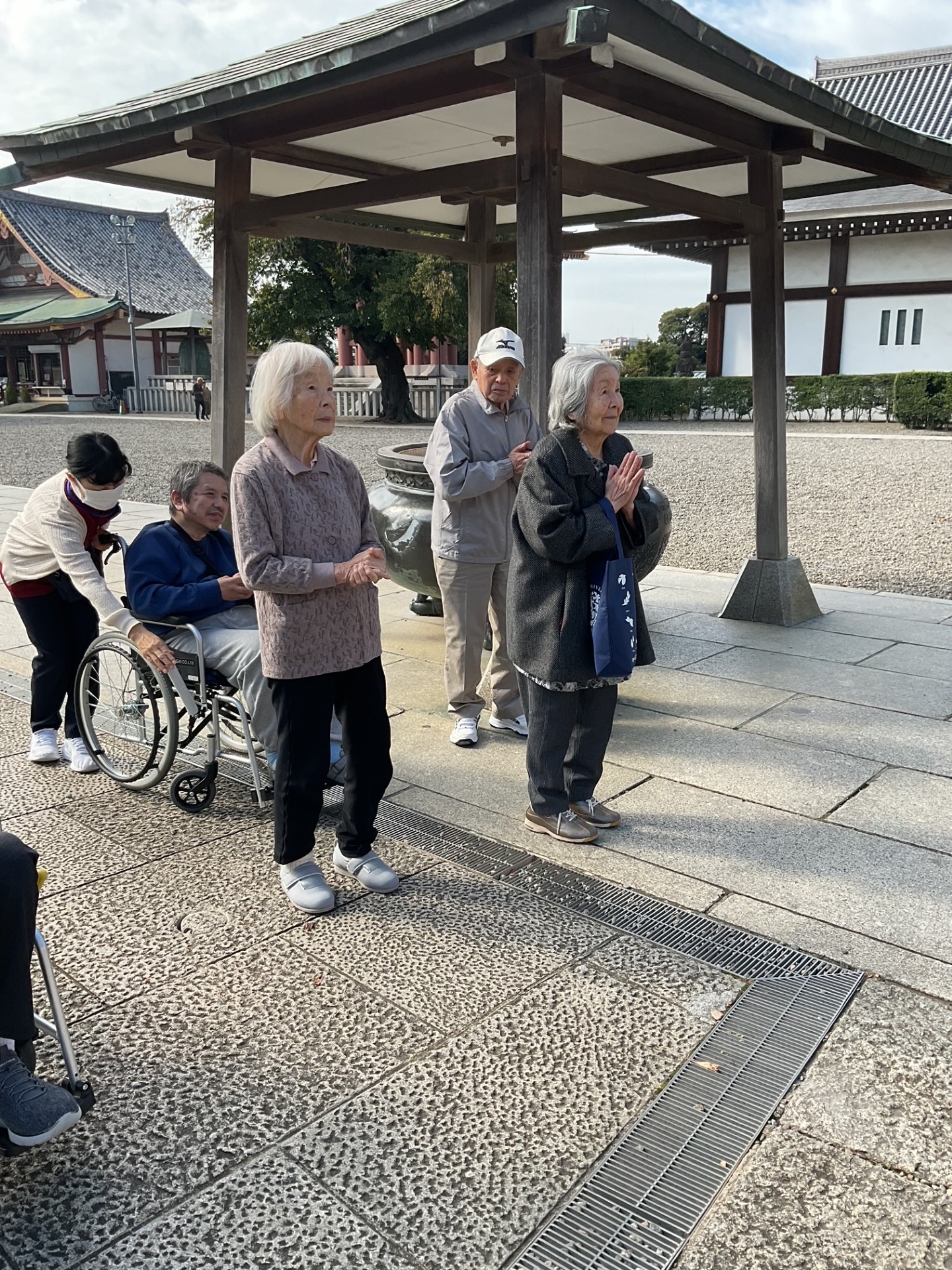 まずは手水舎で清め、その後、本堂を参拝されました。入居者様たちはどんなお祈りをされたのでしょうか…。