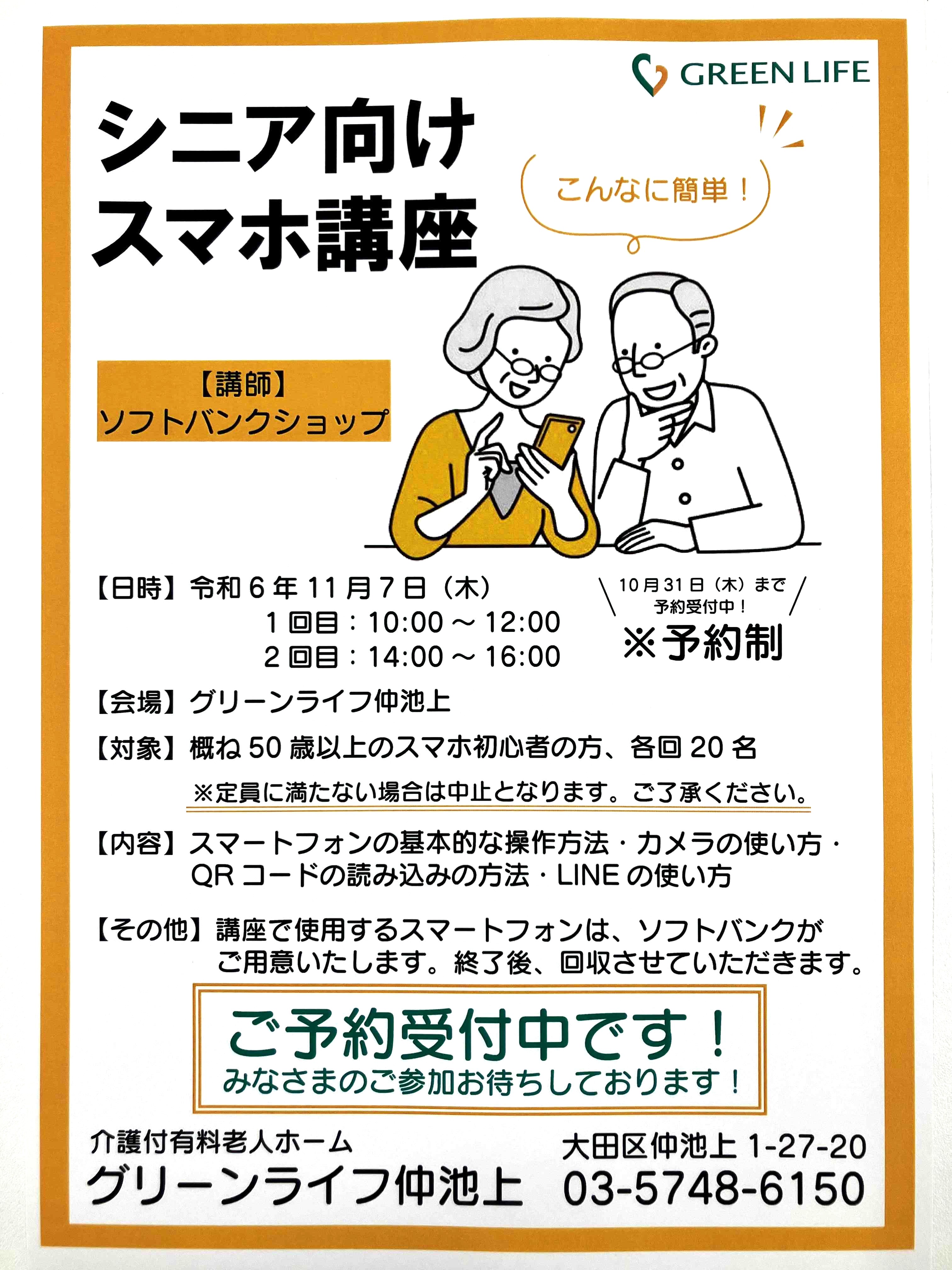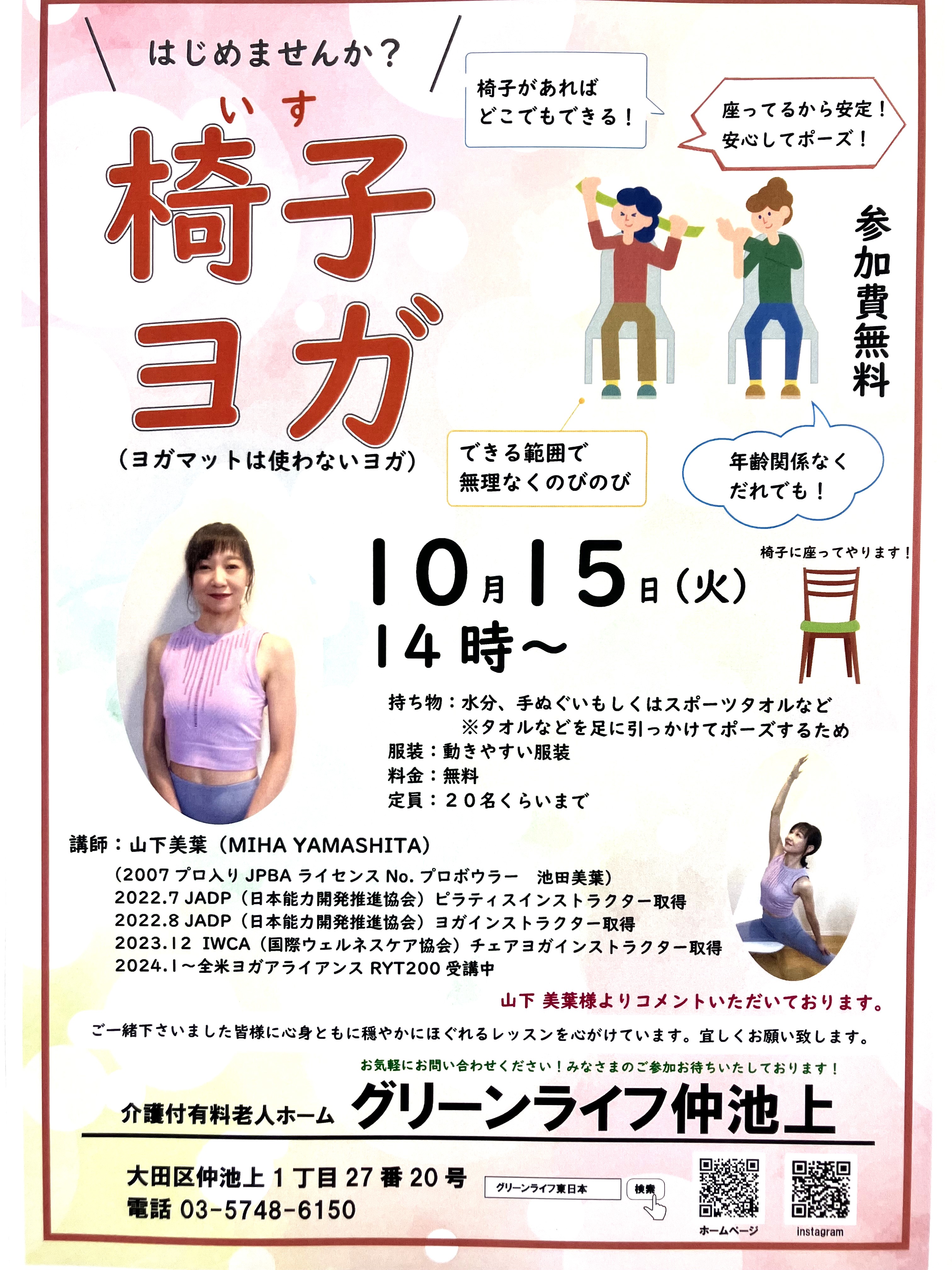 また、シニア向けスマホ講座や椅子ヨガを実施致します。