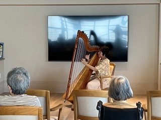 静寂の中に響くハープのやさしい音色で皆癒されました…。