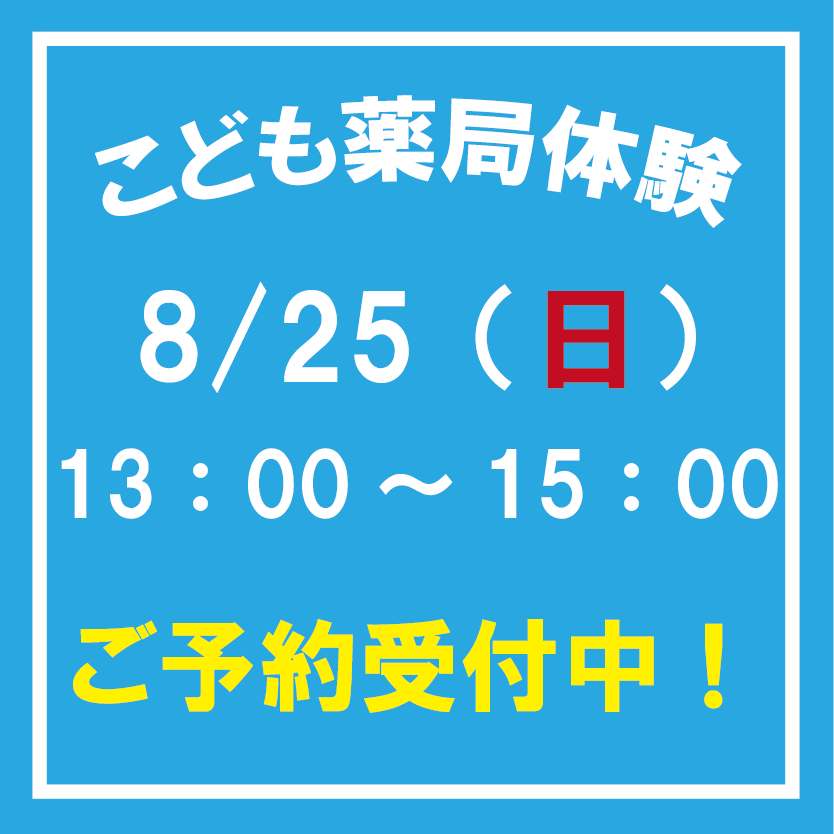 次回のKIDS(お子様向け)のイベントは「8/25(日) KIDS薬局体験会」です!