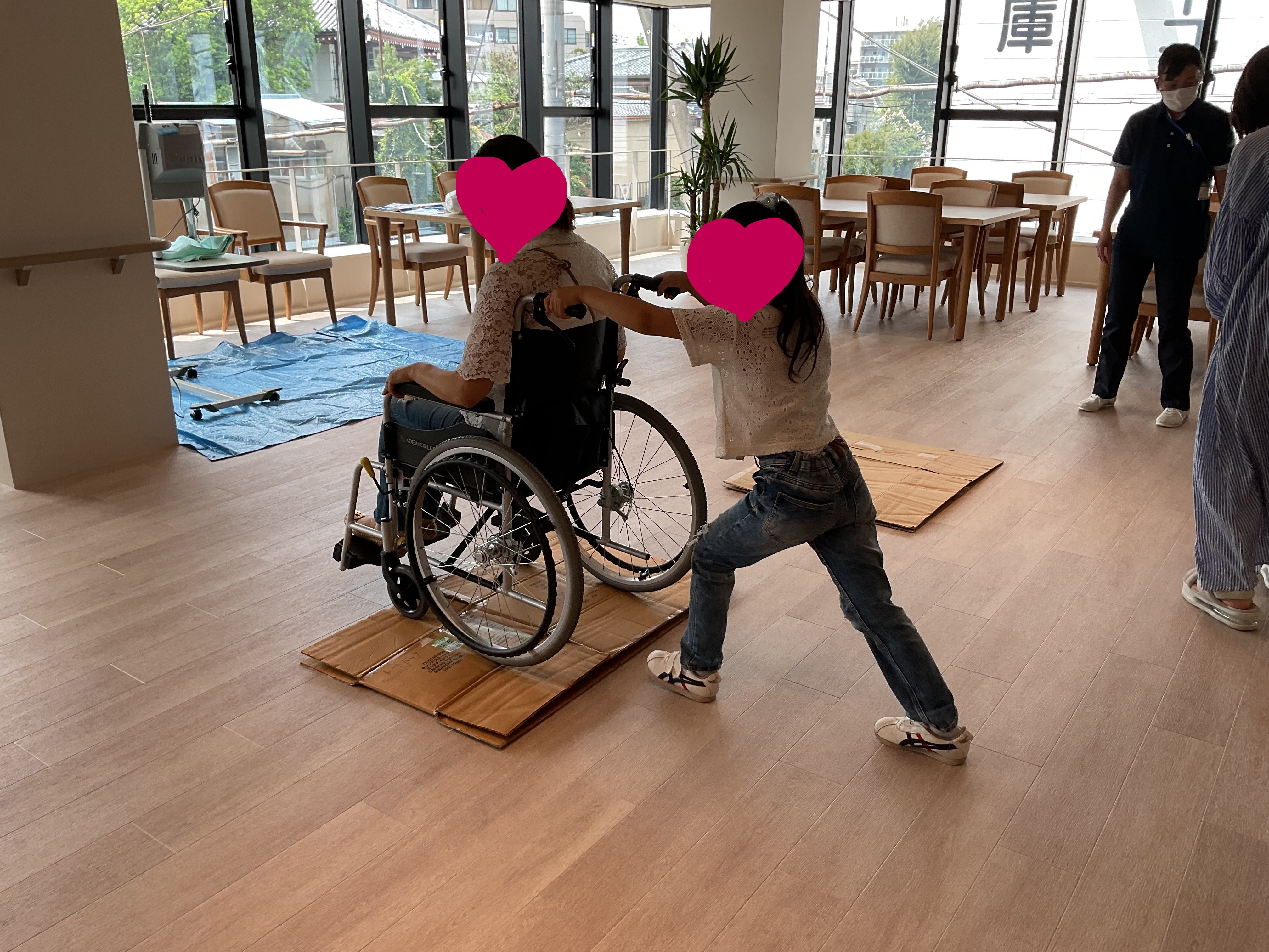 昨日8/19(月)に近隣の小学生を招いて、障害等の疑似体験や福祉用具体験・リハビリ体験などを実施しました。