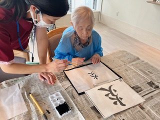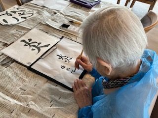 書道レク、生け花レク、かるたレクを入居者様とスタッフで行いました!