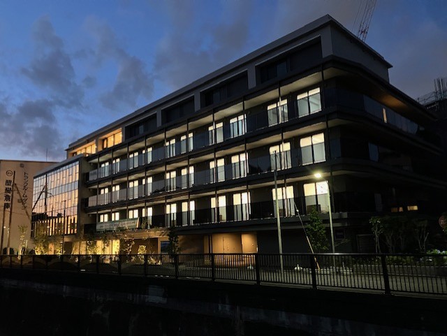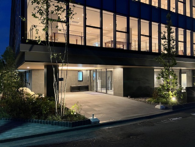 闇夜の仲池上に佇む「グリーンライフ仲池上」の姿です。