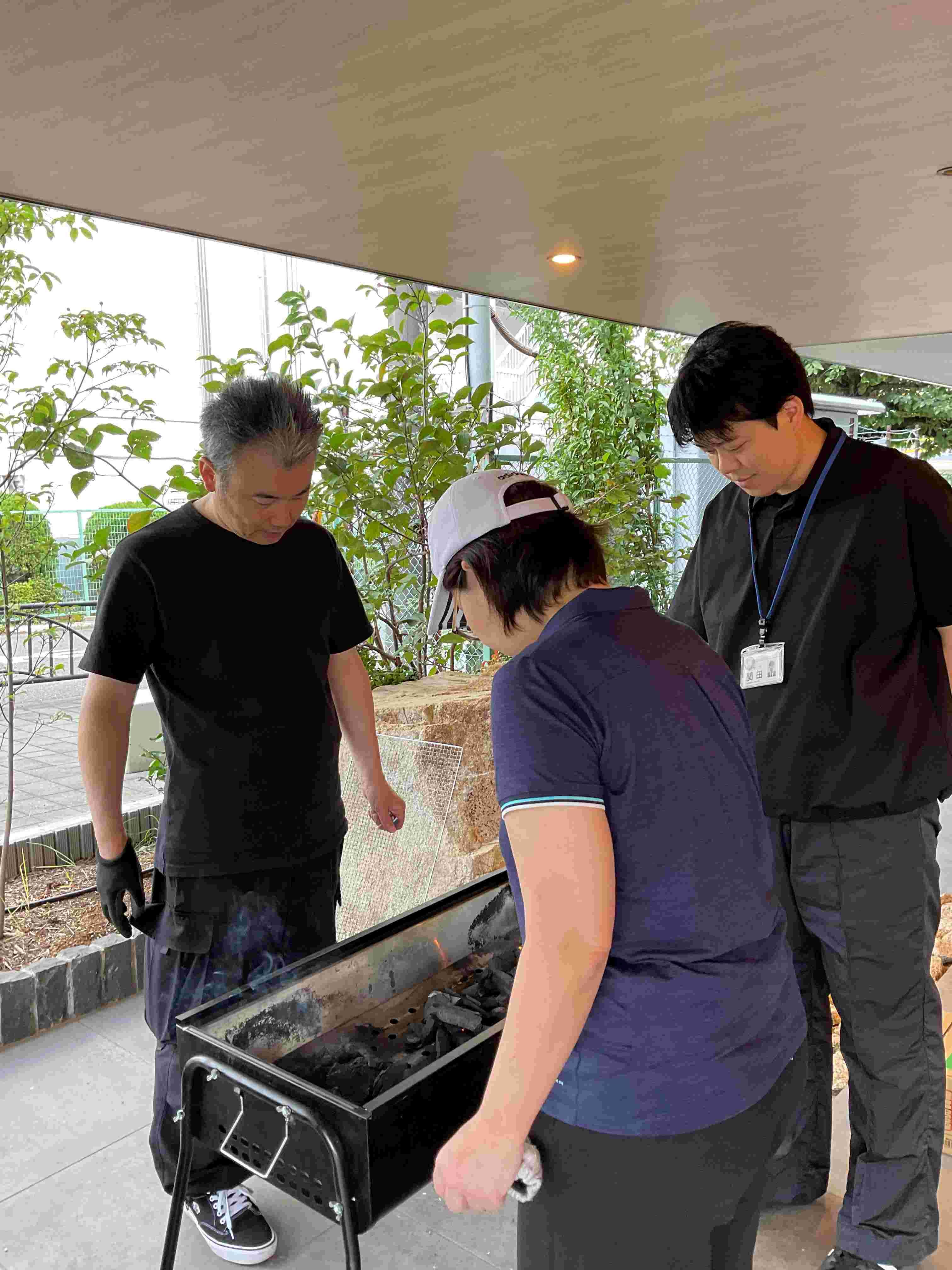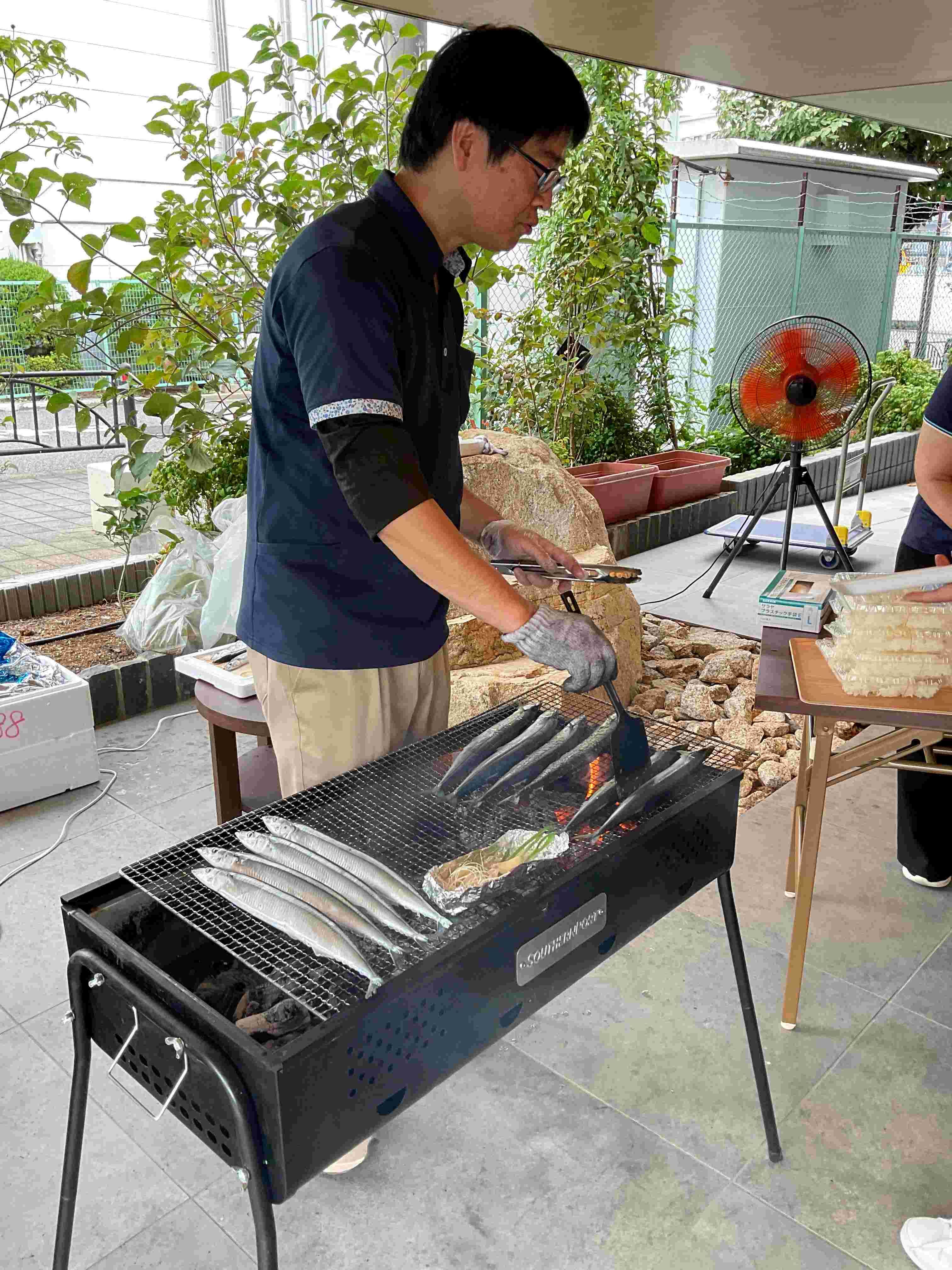 施設玄関前でも秋刀魚を焼いて、皆さんに販売していました。