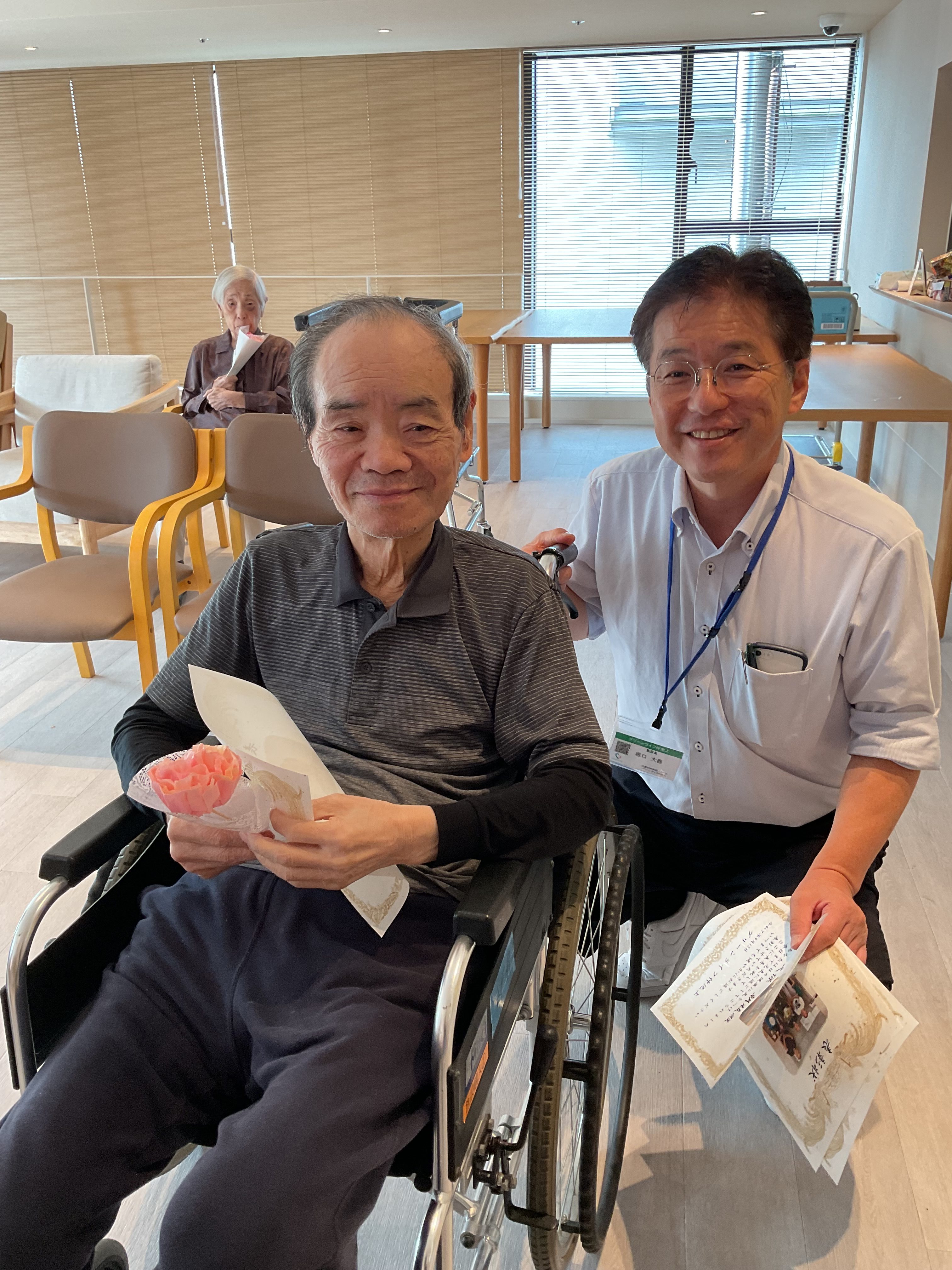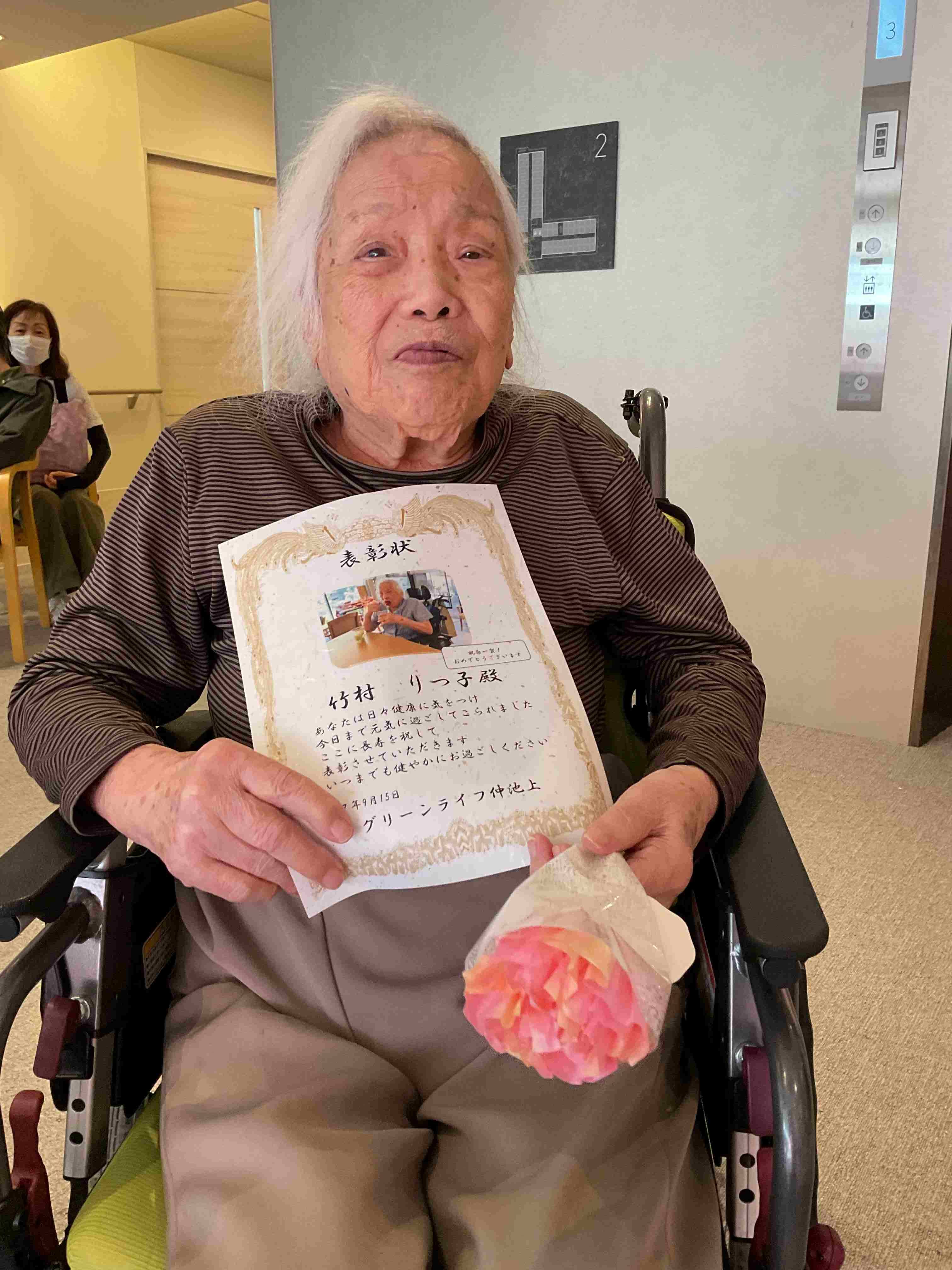 その後で、敬老会で渡す予定だった表彰状をお渡しして写真を撮りました。