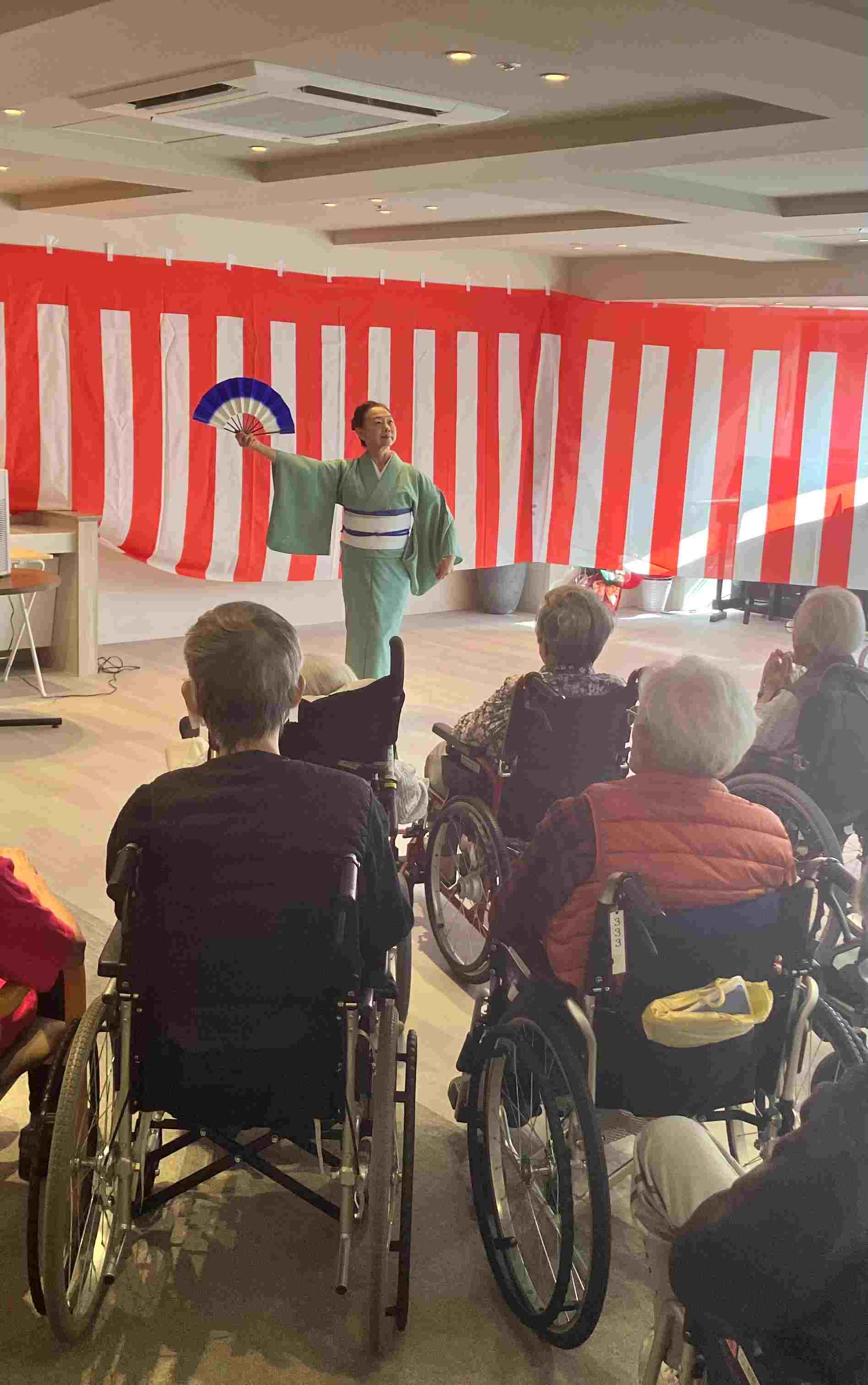 今日はわかば会の皆さんが仲池上に来て、日本舞踊を披露してくれました。