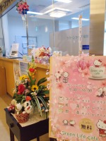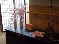 受付付近にある活け花も春の花を中心にしており、ロビー全体が桜色の装飾がひろがっておりとても華やかになっております。