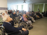 今回も満員御礼!会場に入らないくらい入居者様が殺到していました!!今回も懐かしい楽曲を軽快なギターの音とともに皆さんで大きな声で大合唱です!