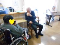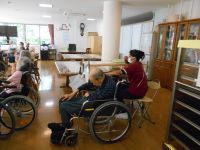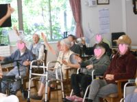 さて、今日の音楽療法は歌に合わせてゼスチャの振り付け