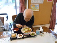 昼食の焼き肉丼を美味しそうに「ぺろり」と食べてします程、元気いっぱい!