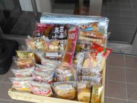 お菓子は普通のお煎餅からソフト煎餅、結構好きな方が多いサラダ煎餅、その他にバームクーヘン、昔懐かしミニ最中の詰め合わせなど他にもチョコレートやクッキーなども取り扱っています。
