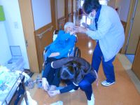 入浴後に、看護婦さんに足の爪切りをしてもらっているとそこにケアマネが、