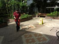 消防署から訓練用に水消火器を借りてきたのですが、空気圧がちょっと足りなかったようで直ぐに勢いがなくなってしまい的に届かず。