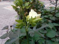 そうです。今が旬のオクラの花、それと小さいながらオクラの実がなっています。