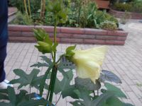 なんとなくカボチャの花の様にも見えますが、カボチャの花にしてはちょっと小さく、大きめの濃いオレンジの花芯が無いのでカボチャではありませんでした。