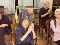 今日は恒例の音楽療法が開催され、武知先生の伴奏で歌ったり、体を動かしたりと