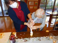 そして、おやつレク(クリスマスケーキ作り)朝から職員と入居者様