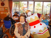 今回、保育園を訪れた理由は、入居者様が被った三角帽子に