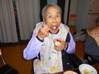 そして・・・昼食時に全入居者様へ配布し、食後のデザートとして