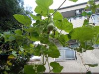 6月に営繕さんが中庭に種を植えてくれて、3ヶ月が経ちこんなにもかわいいひょうたんに育っており、白い花も咲いてました!