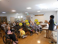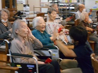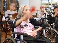 そんな中、音楽療法に参加された方々は鳴子と呼ばれる道具を