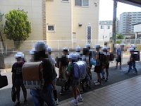 こんな暑い日は小学生の下校時間にあわせてミストシャワーを開始!