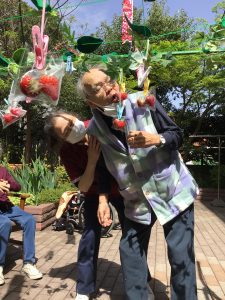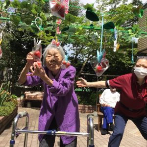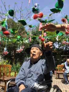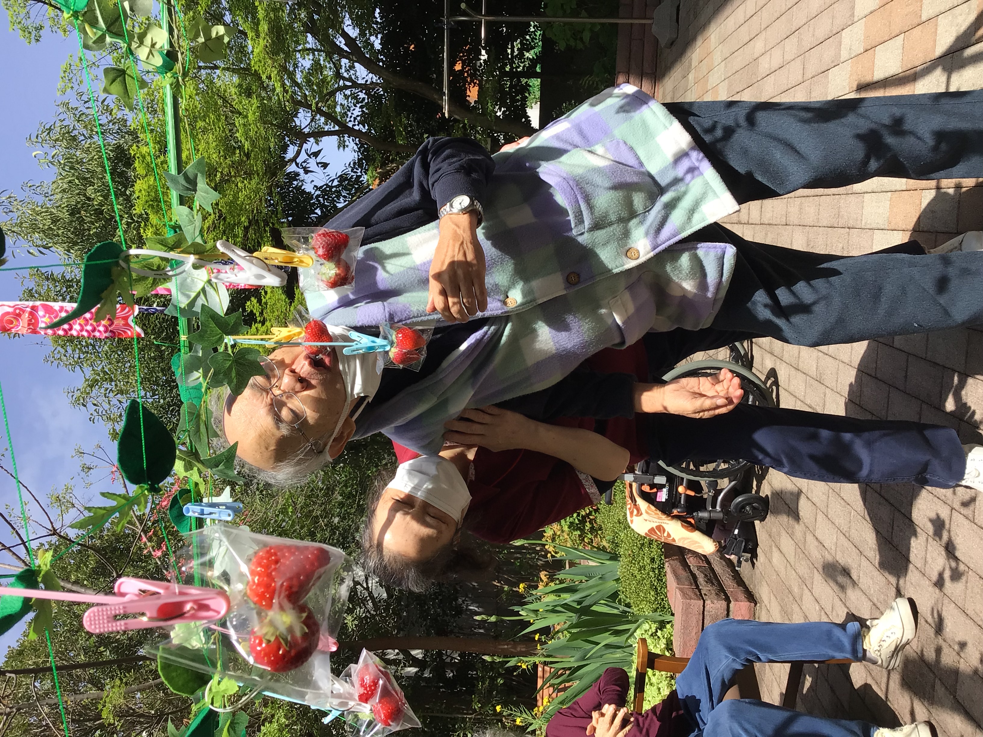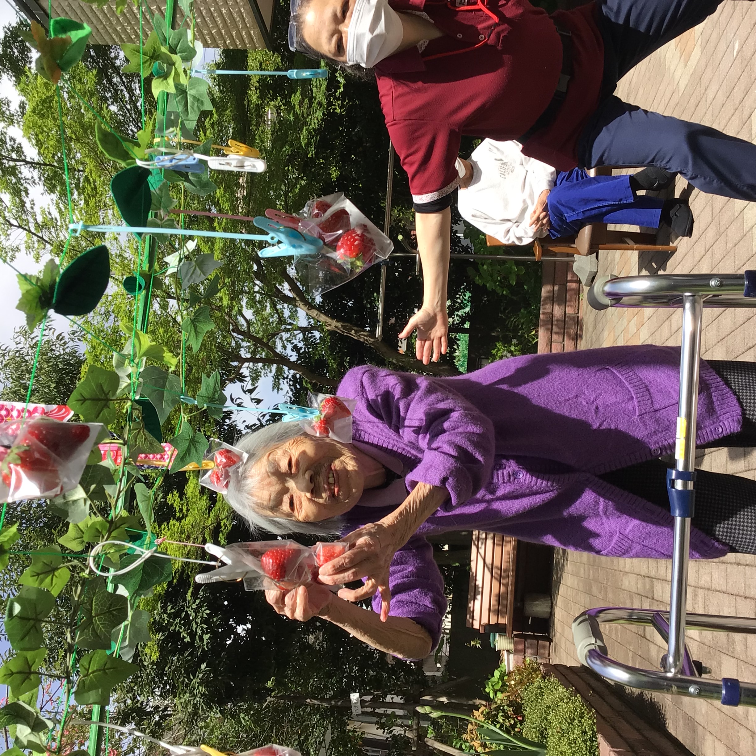 午前中は暑さを感じるくらいの晴天で、入居者様も