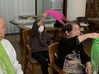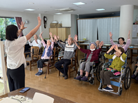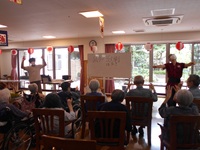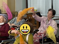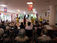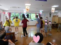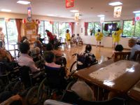 歌に合わせて楽器やスカーフを持ち参加していた入居者様も外の暑さよりも熱気を帯びて楽しんでいました。