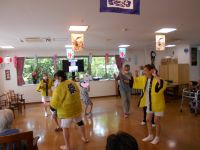 スタッフとその知り合いとその孫が来てくれて太鼓をたたき盆踊りを踊りました。